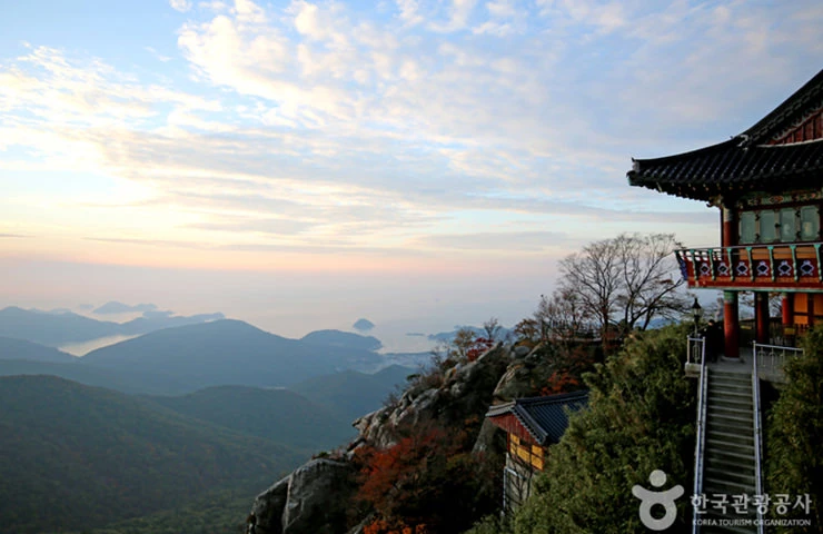 금산보리암 소금강 또는 남해금강이라 불리는 삼남 제일의 명산. 금산(704m)은 한려해상국립공원의 유일한 산악공원으로 온통 기암괴석들로 뒤덮인 38경이 절경을 이루고 있다. 신라 원효대사가 이 산에 보광사를 짓고 보광산이라 불러왔는데, 조선 태조 이성계가 젊은 시절 이 산에서 백일기도 끝에 조선왕조를 개국하게 되자 영세불망의 영산이라 하여 온 산을 비단으로 두른다는 뜻으로 금산으로 이름을 바꿨다고 한다. 정상에는 강화도 보문사, 낙산사 홍련암과 더불어 우리나라 3대 기도처의 하나인 보리암이 있으며, 불타오르는 여명이 바다에서 솟구쳐 오르는 금산의 일출은 3년동안 덕을 쌓아 볼수 있다하며 그 장엄함이 이루 말로 표현할 수 없는 환희를 가져다 준다.